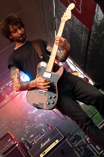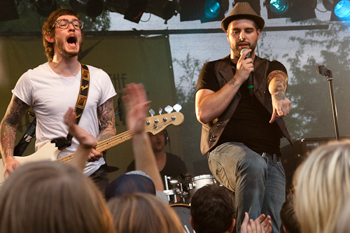 Das dachten sich scheinbar auch die folgenden Mr. Irish Bastard, die sich mit ihren nicht alltäglichen Klängen – darunter Flöte und Akkordeon – feiern ließen und das größte Problem augenscheinlich mit dem Öffnen einer Weinflasche hatten. Der Rest klappte sprichwörtlichen spielend leicht. Etwas, was man den nun folgenden Italienern von Your Hero leider nicht bescheinigen kann. Nach dem Soundcheck war die Vorfreude (nicht nur bei mir) derart groß, dass man beim folgenden Auftritt der Südländer eigentlich nur enttäuscht sein konnte. Wenn nur die Zugabe knallt und der Rest der Songs eher flach und unspektakulär ist, dann dürfte sich diese Reaktion von selbst erklären. Fraglich ist nur, warum so eine Band dann zum Ring durfte…