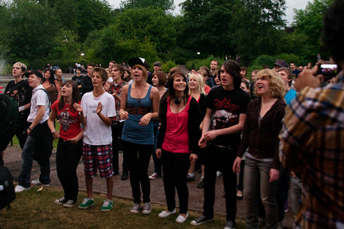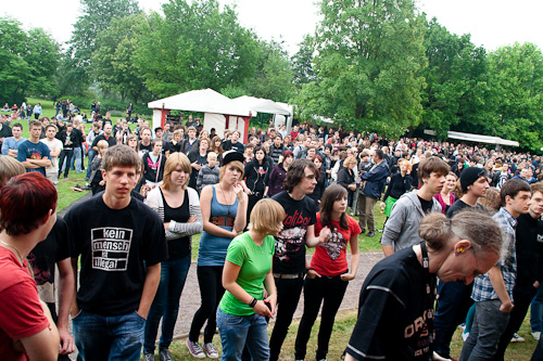 Angst vor dem Regen der letzten Jahre, die Trägheit der letzten Tage noch nicht ganz aus den Gliedern geschüttelt, haben wir in diesem Teichrock-Jahr eine Vorhut an´s Bad Salzdethfurther Gewässer geschickt, um die großartigen Blakvise, denen ihr guter Ruf quasi in Lichtgeschwindigkeit vorauseilt, zu beobachten. Wie es immer so ist: hinterher ist man immer schlauer. Nicht nur, dass Blakvise wirklich zu begeistern wussten, es blieb sogar trocken!Den Auftakt für uns machte die Show von „Die Rakete“, die irgendwo zwischen Toys`R`Us und Deichkind anzusiedeln sind und mit Delphinflosse dem deutschen Sprechgesang huldigten. Das coolste an solchen Bands ist nicht nur die gesunde Portion durchgeknallter Wahnsinn, sondern die Tatsache, dass man soetwas einfach verdammt selten sieht. Das Publikum wusste dies vor der im Vergleich zum Vorjahr enorm gewachsenen Bühne definitiv zu würdigen. Das Publikum war übrigens parallel zur Bühne und zur gesteigerten Qualität der angereisten Bands angewachsen – da haben die Orgas auf das absolut richtige Pferd gesetzt. Einfach mal klotzen und nicht kleckern!
