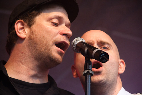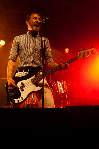 Highlight, darum mache ich keinen Hehl, waren für uns ohnehin die nun folgenden Eternal Tango. Sorry, aber so, wie sich diese Jungs den Arsch abspielen, quer durch unsere Republik reisen (ihre Heimat ist ja nun auch nicht so groß) und Spaß auf der Bühne versprühen – zum Niederknien. Geil auch: Ein völlig besoffener Typ – sie tauften ihn Marius – krakelte vor der Bühne herum. Und was mache ich, wenn ich Nervensägen nicht in den Griff kriege? Ich hole sie mit ins Boot, widme ihnen Songs, lasse sie tanzen oder hole sie sogar zum Mitsingen auf die Bühne. Auch wenn dann „Fleischsalat“ ins Mikro gebrüllt wird und die Band vor Lachen zusammenbricht – so rettet man nicht nur Auftritte, so dominiert man sein Publikum. Und auch, wenn sie kaum alte Songs gespielt haben, nein, wahrscheinlich weil sie schon einen Einblick in das neue Album gegeben haben, muss man sie lieben!
